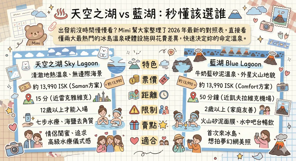 【2026冰島溫泉】天空之湖 vs 藍湖怎麼選?最新門票交通實地心得全攻略!