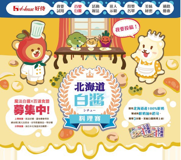 即日起到2015/01/31止,使用【HOUSE好侍北海道白醬料理塊】料理,