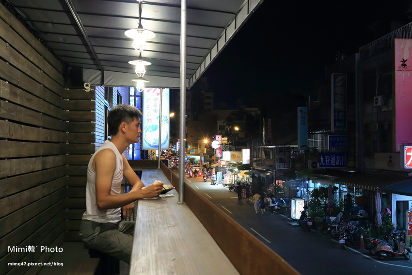 坐在二樓的陽台區吃冰,看著底下往來穿梭的人車,