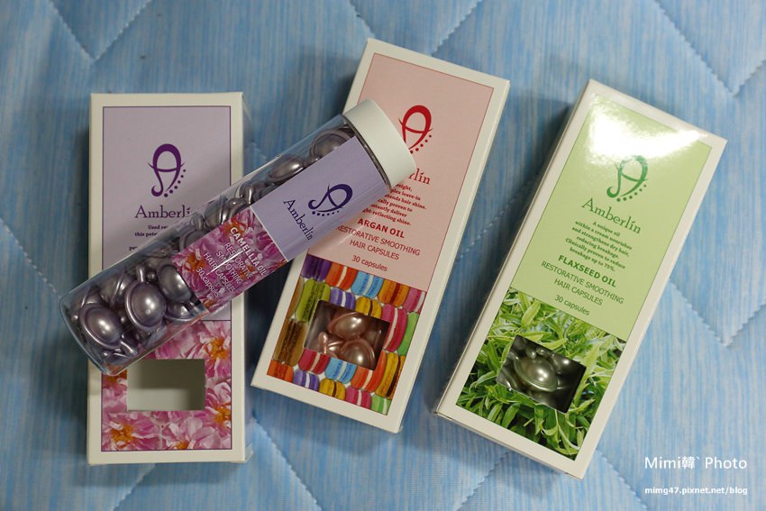 有三瓶Amberlin護髮時空膠囊(白麝香山茶花、馬卡龍摩洛哥油、馬鞭草亞麻仔油),