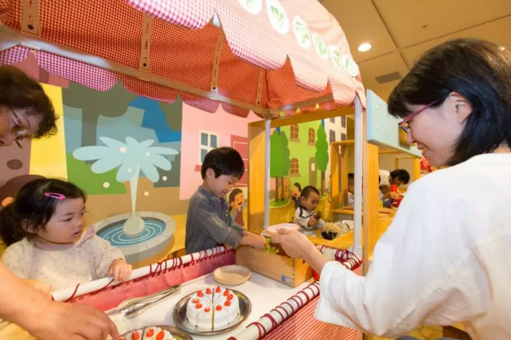 許多日本媽媽會站在外面給孩子任務單,請小朋友進去買,從遊戲中就學到記憶名稱、數量數字概念、購物禮貌、文字發音等,每個區域都有工作人員協助,就算聽不懂日文也完全沒問題。