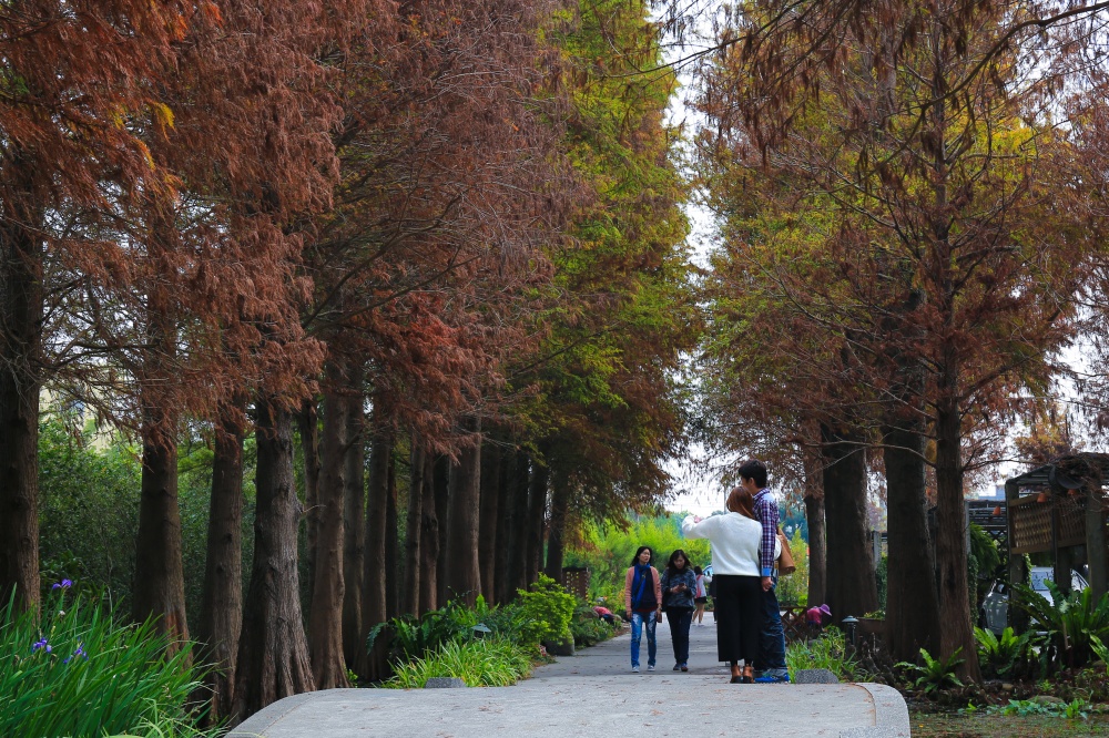 車子從彰化田尾村莊間的小路轉進「菁芳園」,眼前高聳的落羽松讓人捨不得把眼睛移開。園區有提供免費停車場,但大約只有10~20個位置左右,如果車太多,就只能停到更外面的付費停車場(50元/次)了。
