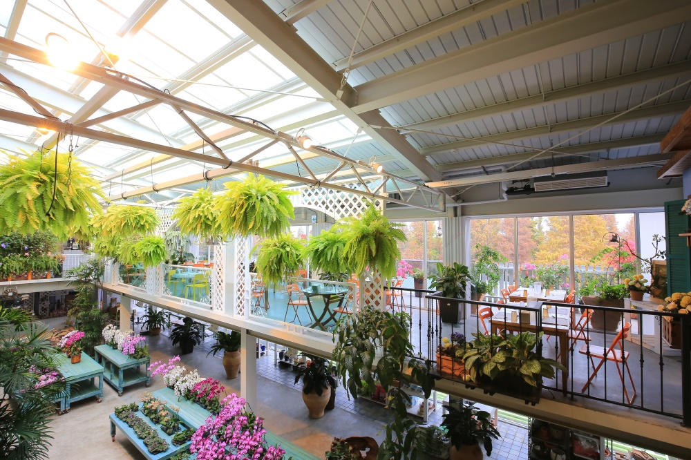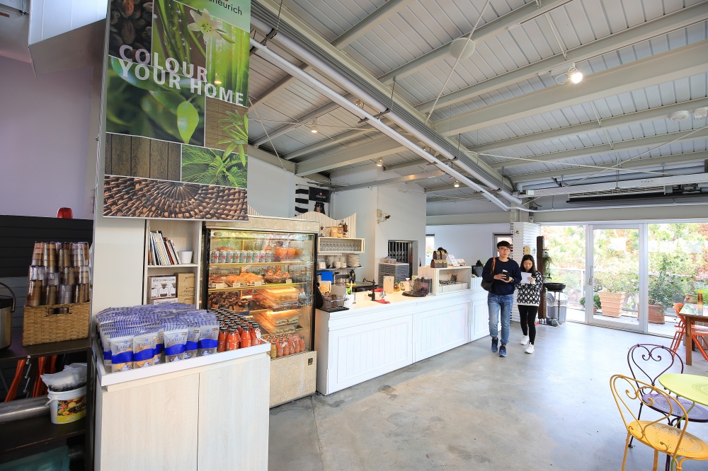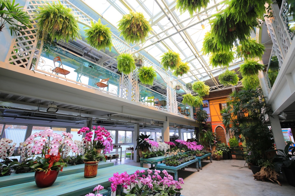 菁芳園玻璃咖啡廳整棟是三層樓高的建築,裏頭展示蘭花盆栽、園藝工具等,喜歡都可以買回家,而Tenway cafe位於三樓,花草搭配吊掛在半空的綠色植栽,剛走進來就被迷住惹!