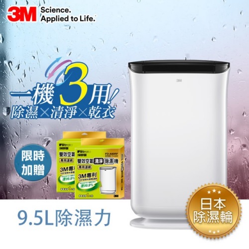 這台3M日本除濕輪科技9.5L空氣清淨除濕機(FD-A90W),官方數據比許多同級除濕機效能多了50%,還具備空氣清淨機功能,更棒是可以獨立開啟,即使不除濕也能當空氣清淨機使用,3M獨家的HEPA超微米靜電濾網,能過濾空氣中大部分懸浮微粒與過敏原,如果家裡還沒空氣清淨機的話可以考慮這台。
