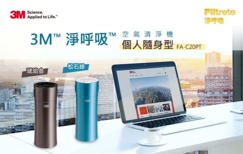 這台3M空氣清淨機FA-C20PT是個人隨身空氣清淨機、車用空氣清淨機,有一般插頭也能透過USB充電,體積約一個350ml保溫瓶很輕巧,不管是通勤、辦公或開車都適用。而且小歸小,同樣使用3M專利靜電濾淨技術,再搭配活性碳濾網可有效濾除異味。