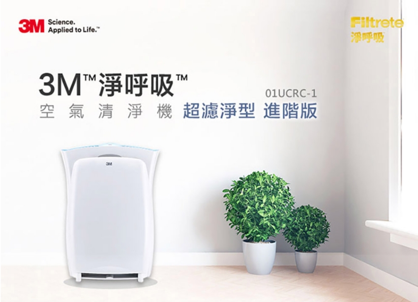 這款3M空氣清淨機(01UCRC-1)是3M淨呼吸系列的進階版,不到4,000元的價格很吸引人,喇叭造型的出風口讓人很難不注意到它,有專利靜電濾淨技術,使用3M Filtrete的複合式濾網,有HEPA和活性碳過濾層。開最大風速的時候有點吵,但因為它不會主動偵測空氣品質調整運轉,所以建議睡覺時調低速模式,30分貝左右是還可以接受的程度。