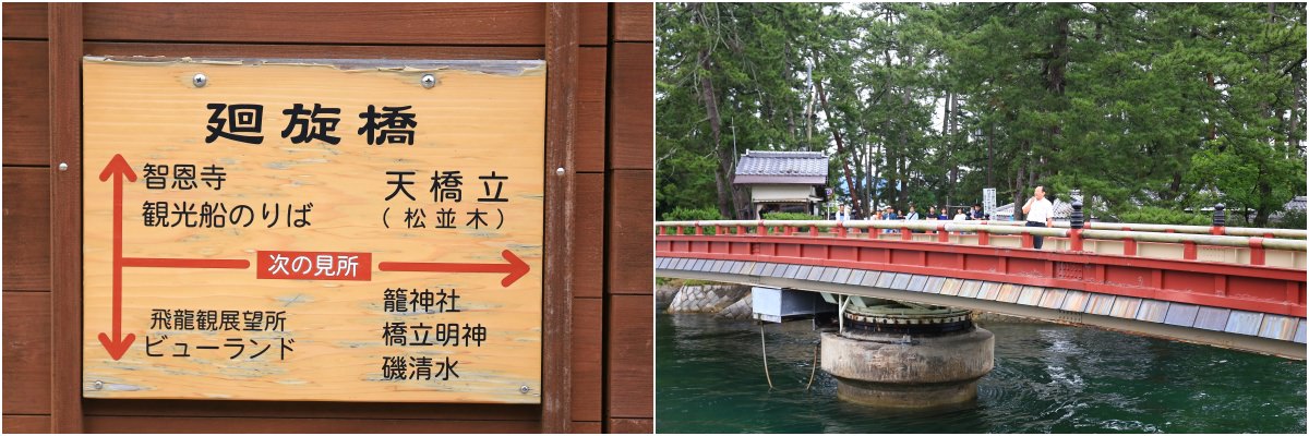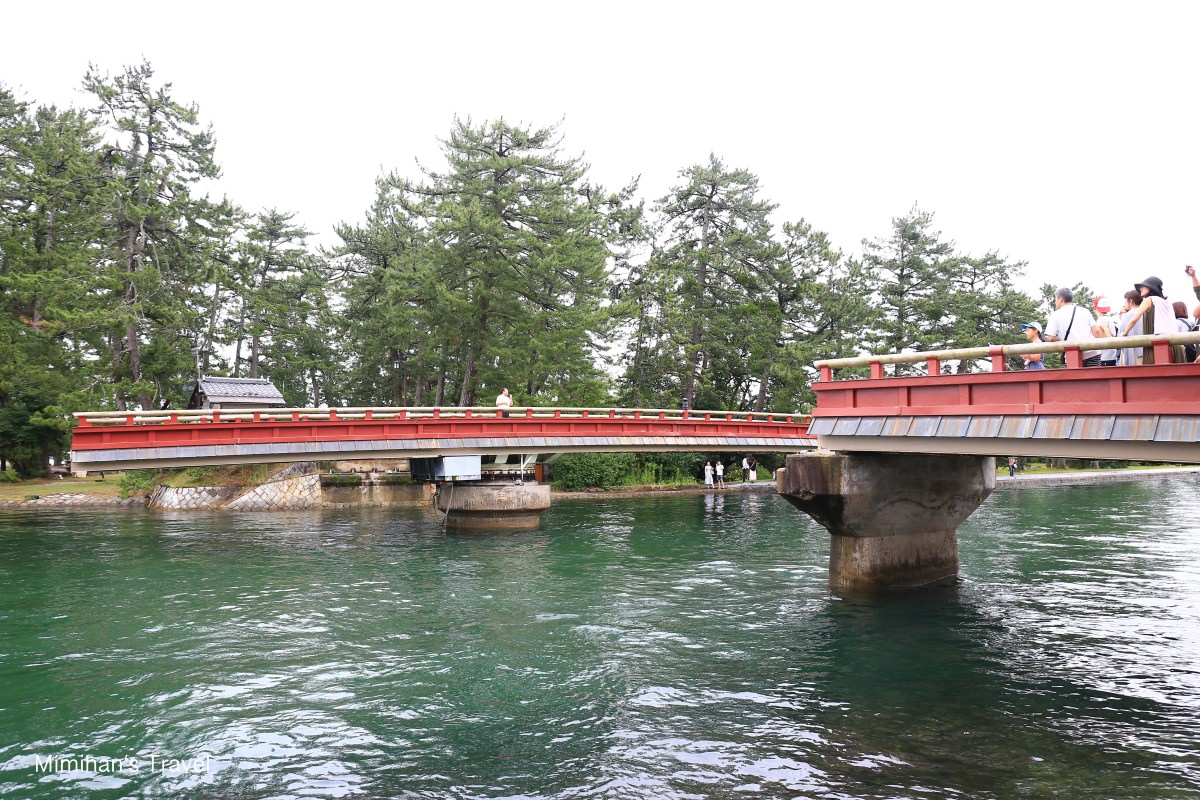 天橋立這座紅色的迴旋橋就在智恩寺山門旁邊,對岸就是天橋立沙洲(天橋立公園),每當有船隻要通過時,橋身就會旋轉90度讓船通過。據說在1923年剛建造好的時候是手動運轉,而直到1960年5月才升級成電動控制,每天會不定時旋轉,運氣好的話就能看到囉~