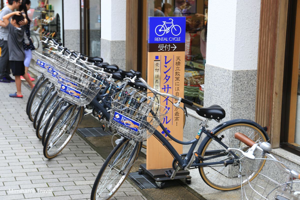 騎自行車也是漫遊天橋立很棒的方式,除了可以比較輕鬆前往各天橋立景點,最吸引人的是可以直接騎著穿過天橋立沙洲,也就是天橋立公園。在兩側都有很多租借腳踏車的店家,如果想要騎到對面,然後搭船回來的話,建議可以找提供單程(片道)租借的店家。