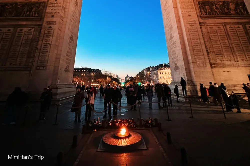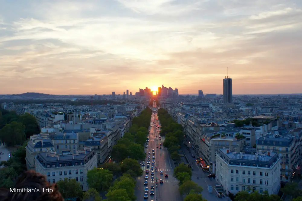 我覺得凱旋門最迷人時刻絕對是「日落前半小時」。我有次大約傍晚6點上去(依季節調整),先把白天的景色拍一輪,然後看著太陽慢慢下山,街燈一盞盞亮起,最後等到整點艾菲爾鐵塔開始閃燈。那個瞬間你會覺得前面爬樓梯的痠痛都值得了。