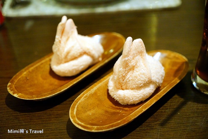 服務人員態度極好,入座後很快送來冰涼的毛巾,讓我們擦擦汗消消暑,還折成可愛的小兔子形狀呢~