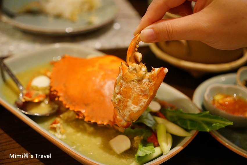其實這隻應該不是咖哩螃蟹,我們原本想點黃色的那種咖哩螃蟹,結果服務人員後來告知說賣完了,就推薦我們另外這道螃蟹料理,口味有點像是綠咖哩,有不少泰式香料的香味,也是很好吃~