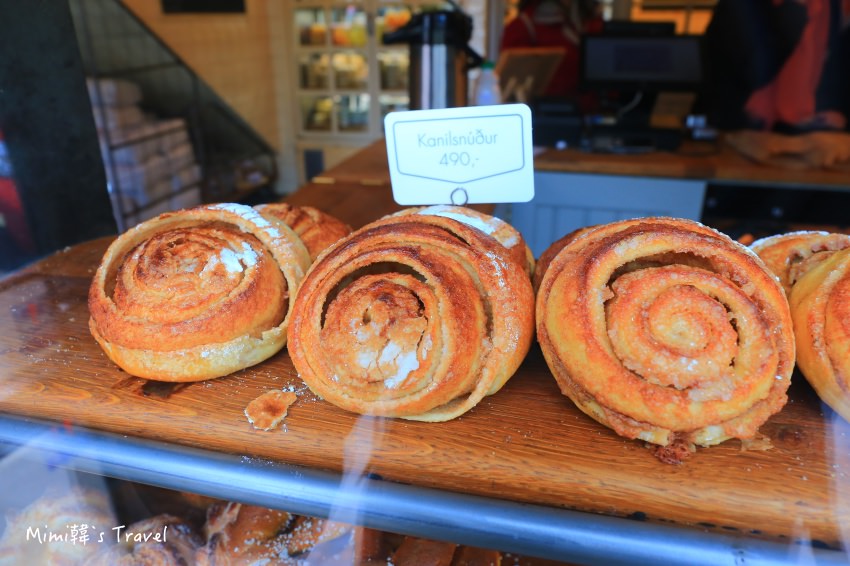店裡最受歡迎的是他們招牌肉桂捲,Mimi這趟在雷克雅維克待了四天三夜,就來買了兩次,畢竟這價位是相對便宜的冰島早餐或午茶點心的選擇,而且口味還挺好吃,也可以說我覺得更接近我們台灣人會喜歡的味道。