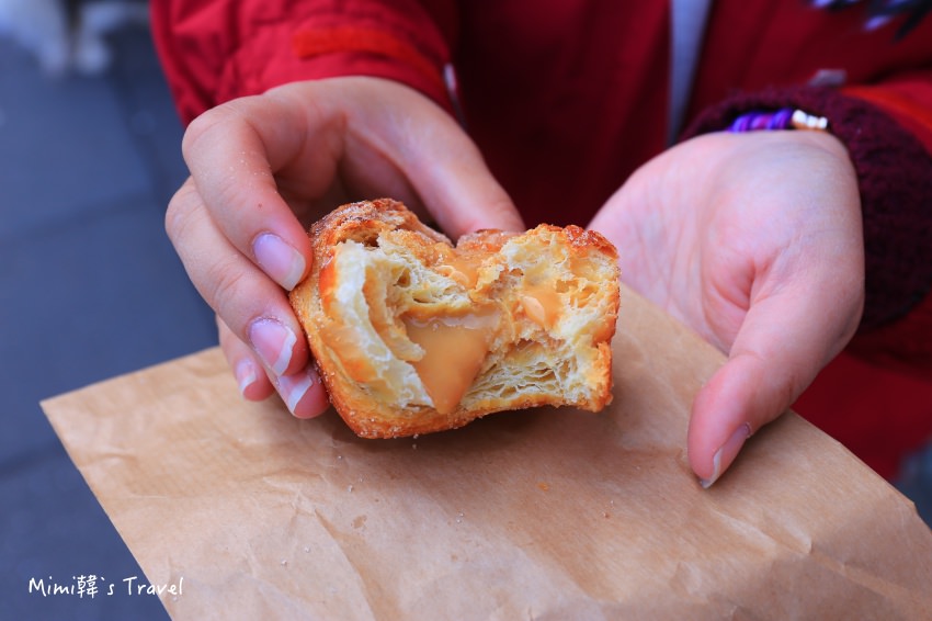 好啦!總之就是外層吃起來和我們的酥皮甜甜圈差不多,裡面口感細緻,包裹著濃郁香甜的牛奶糖內餡,吃起來也是幸福程度爆表。