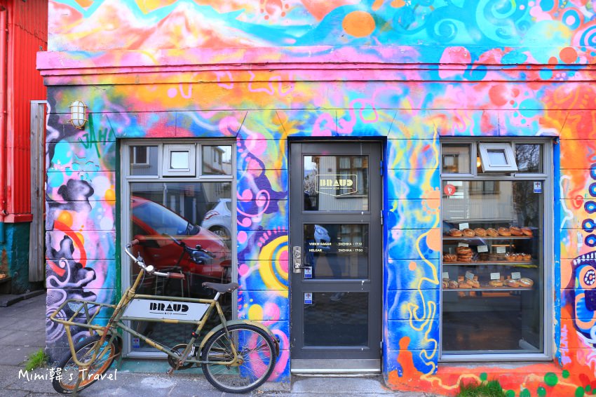 外型很繽紛,在整排的民居中相當顯眼,其實我們第一天開車到市區的時候就有注意到這間花貓貓的店,只是那時候不知道它就是雷克雅維克美食名單裏的Braud & Co烘焙店 😆
