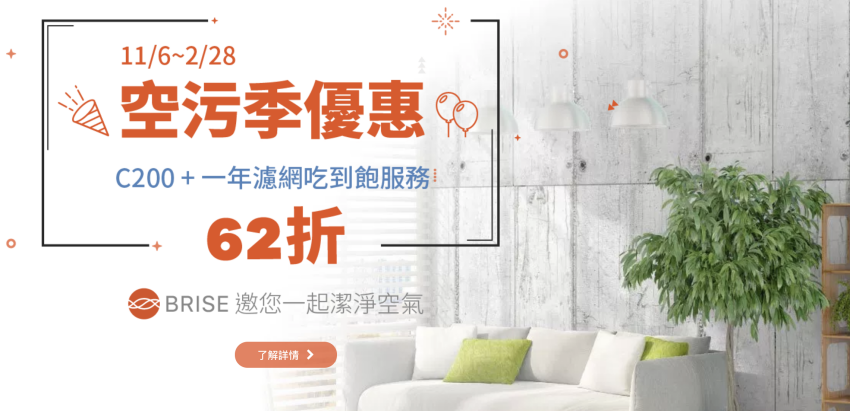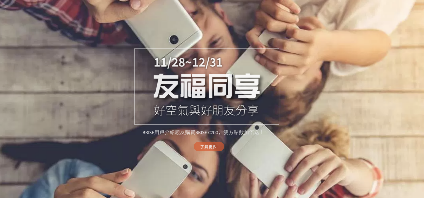 BRISE 空氣清淨機 有福同享計畫(2017/11/28 ~ 2018/02/28)
