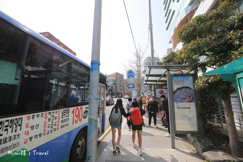 出站後就順著路直接右轉,大約走個3分鐘就能到釜山大學醫院(부산대학교병원)的公車站牌了。來這裡等車的,有滿多部分都是要前往甘川洞文化村的遊客 😆