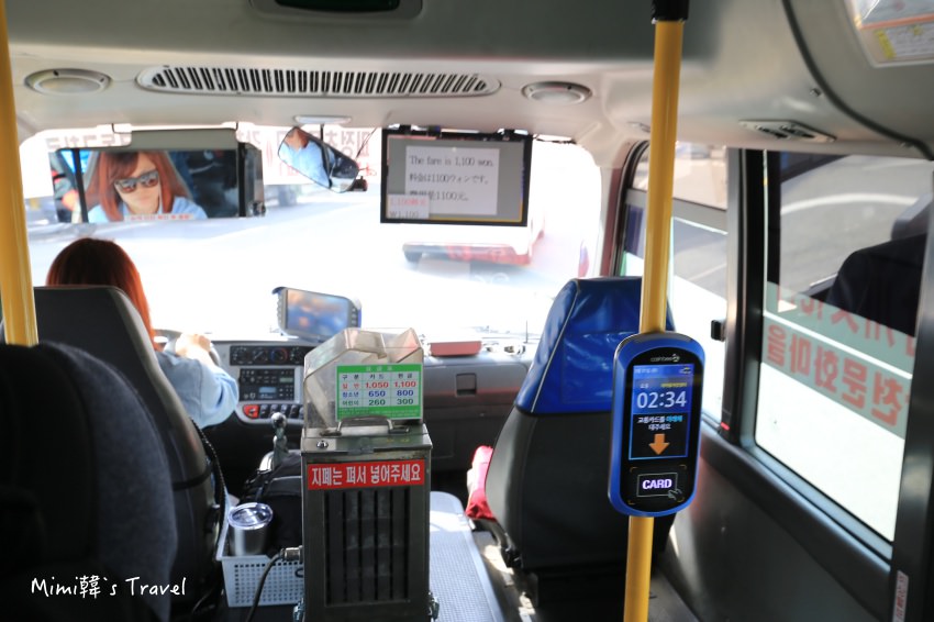 車資是1,100韓元,直接使用T-money卡刷就可以了。大家看出來了嗎?一趟要1,100韓元,三個人的話還不如直接攔台計程車 😆