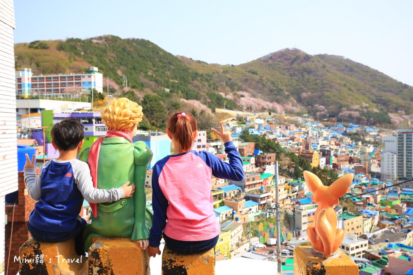 這應該是甘川洞文化村裡最受歡迎的造景惹!帥氣小王子與可愛狐狸坐在路旁,欣賞著底下可愛的村莊,是多棒的畫面。如果遇到人多的話,跟他們合照是需要排隊的,聽朋友說假日最多可以等個30~40分鐘,時間寶貴我還是拍拍背影就好哩~
