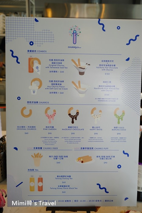 店裡就賣西班牙油條,各種口味$90~95元,還有幾款冷泡茶
