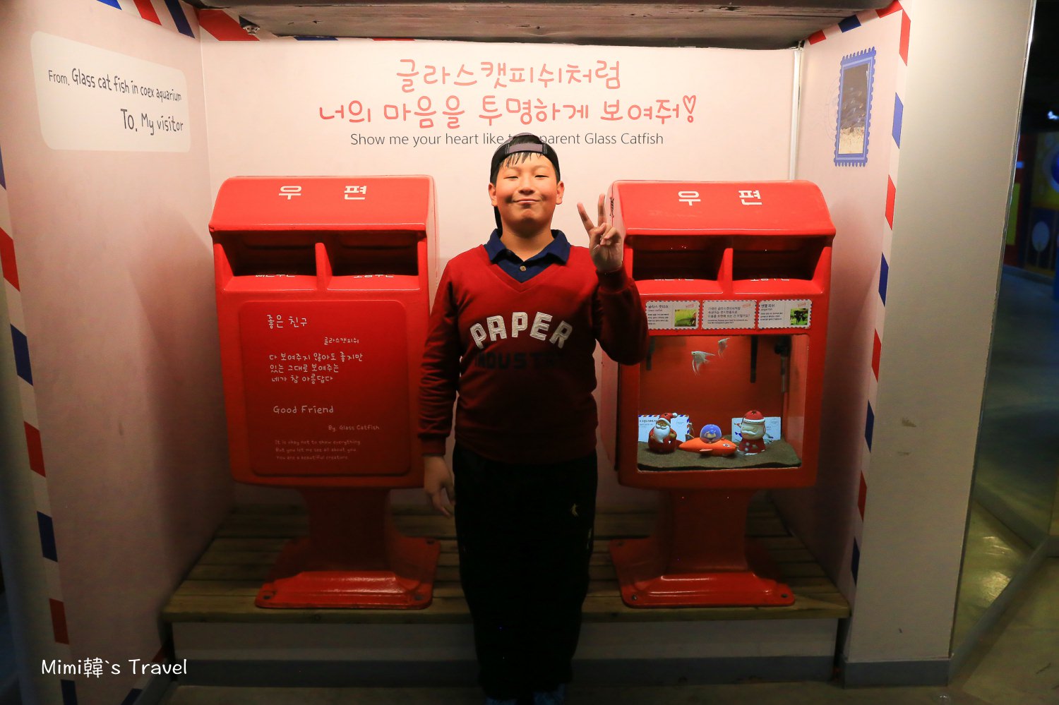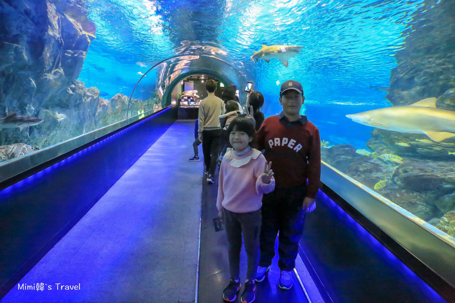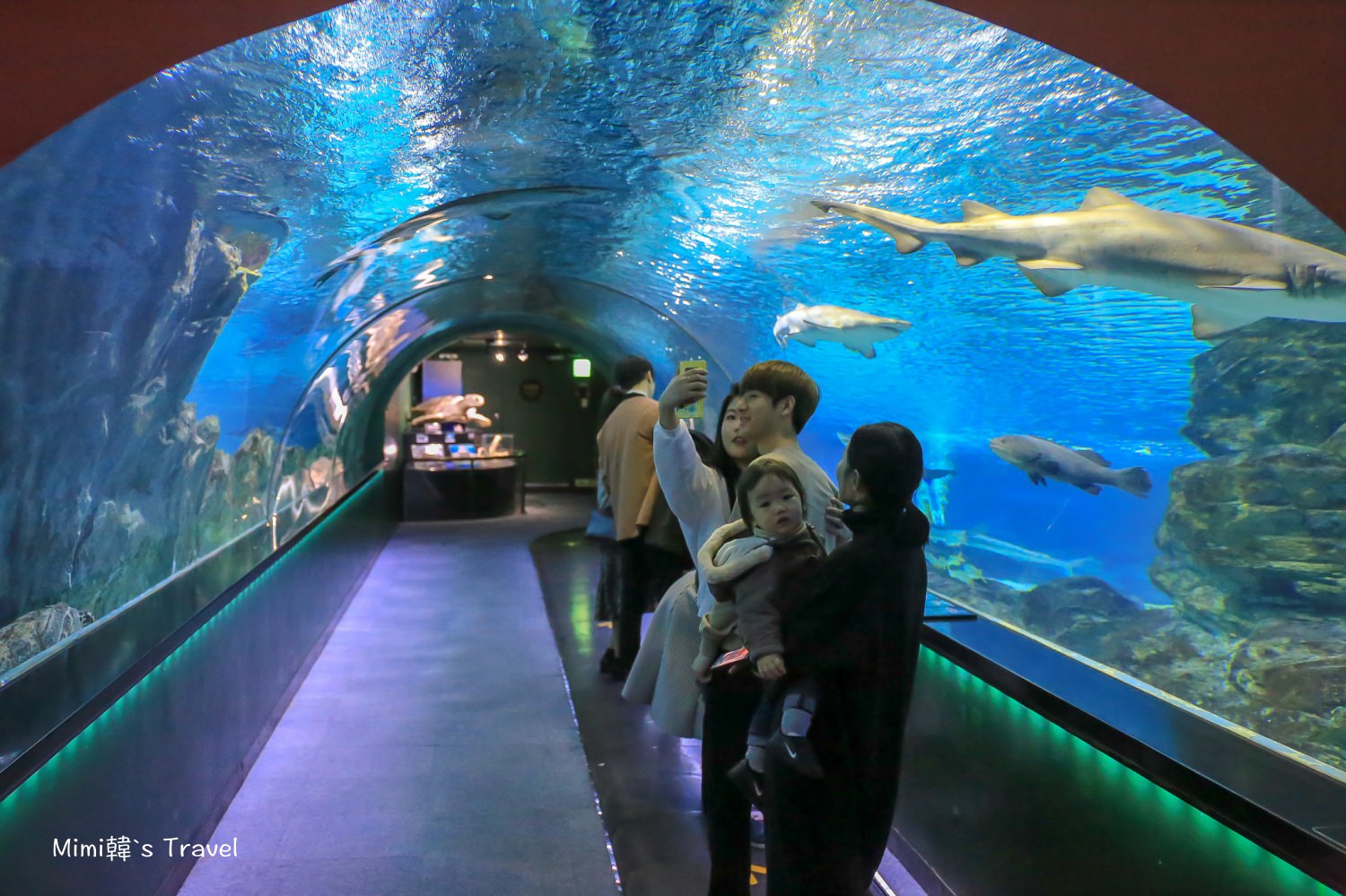 海底隧道也是館內的熱門設施,但其實只有短短一段,走道邊還設計了有點兒浮誇的自動步道(不到20公尺是有沒有這麼懶啊 😆 ),不過據說好幾部韓劇都曾經在這裡取景過,近期最有名的應該就是全智賢藍色大海傳說了吧!
