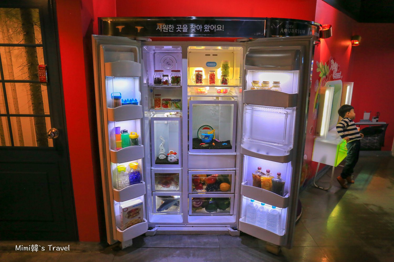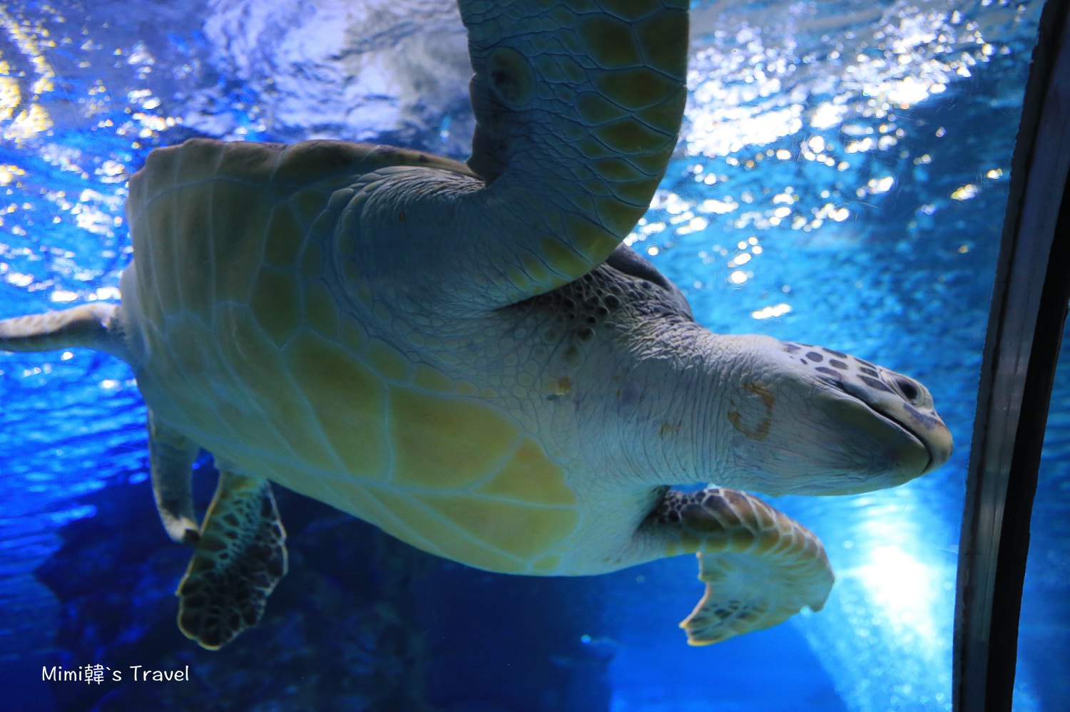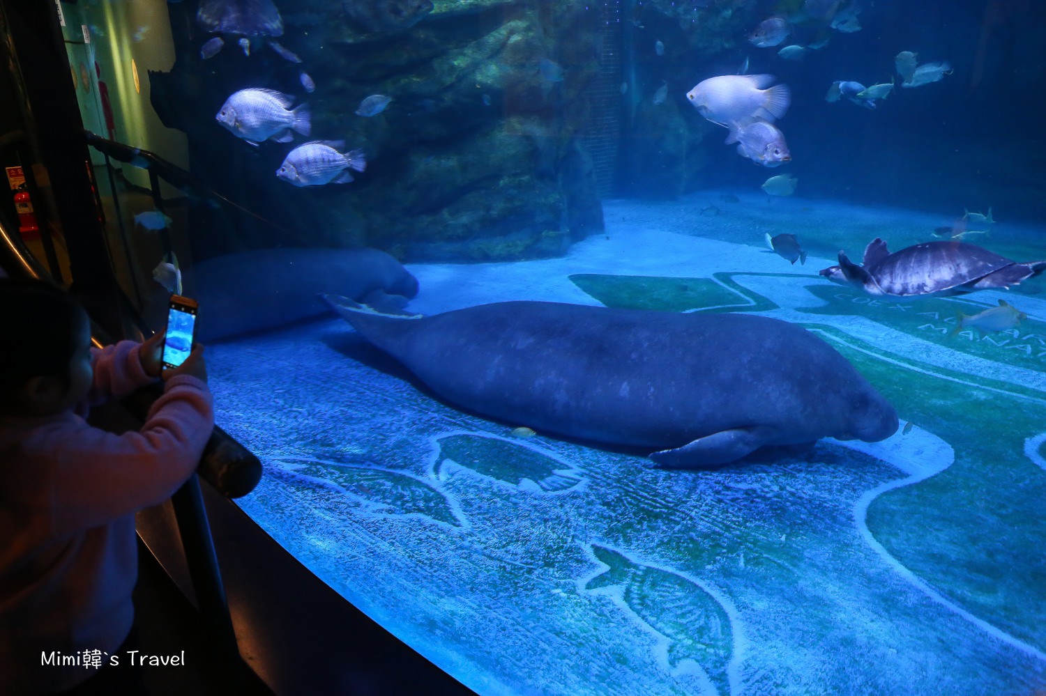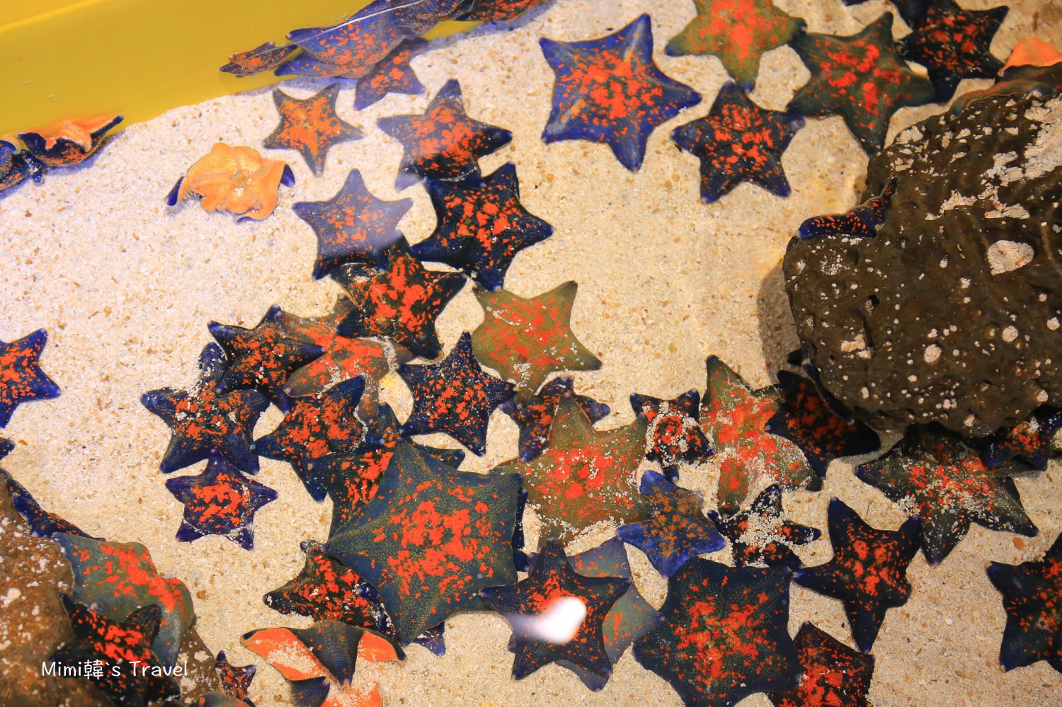 貫通兩層樓的巨大水槽,裡面生活了好多海底生物,其中最讓我驚喜的就是竟然有很多滿嘴尖牙利齒鯊魚,每隻近看都好兇猛,看來韓國人強悍的性格就連水族館的呈現也或多或少受到影響。