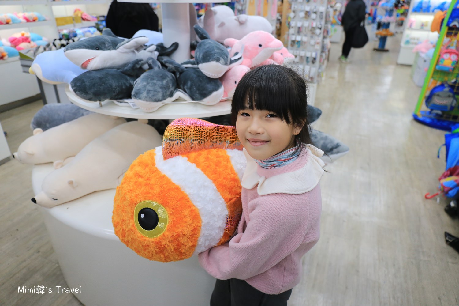 離開前也別忘記逛逛最後的紀念品商店,裡頭所有的明星海洋生物都化身成可愛的玩具、娃娃或公仔,精美的程度和日本差不多搶錢,小妞說要把尼莫帶回家⋯這次來韓國自由行她已經買了兩隻娃娃了,把娃娃當成紀念品在收集的概念 😆