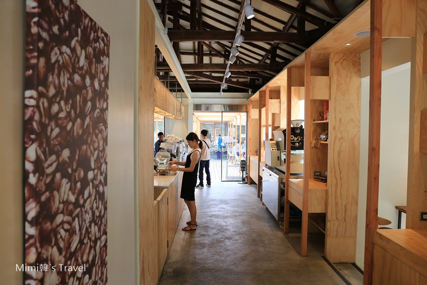 推開大門就是整個開放式廚房,能看到店員們正忙著煮咖啡、烤舒芙蕾,空氣中飄散著迷人的咖啡香,加上木頭原色加純白裝潢,呈現了一種使人感到輕鬆的氛圍。