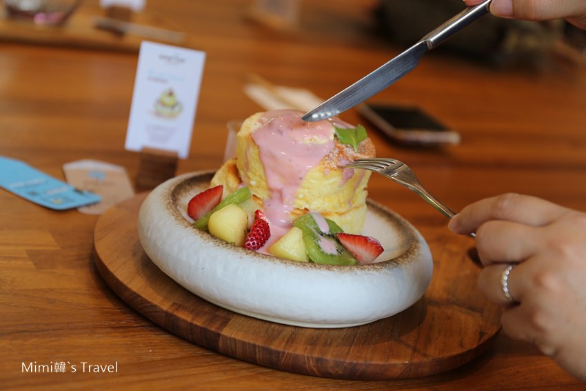 至於吃起來,姊是覺得他們家舒芙蕾的口感比較像是蛋糕,似乎少了點濕潤的口感,要搭配旁邊的莓果醬吃比較好,另外水果都是選脆桃、草莓、奇異果這類甜度不高的種類,再加上果醬也不太甜,整份吃完就沒有那種甜蜜的幸福感,這點對於我而言是比較可惜的,沒辦法...我台南人啊 😆