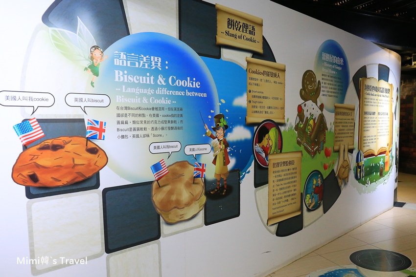 順著參觀動線來到餅乾殿堂,沿途用淺顯易懂的互動裝置、說明來呈現各種餅乾的文化,像是造型、語言、器具、小知識等,讓原本該是生硬無聊的內容,變得有趣許多,也讓大家能更了解自己在大賣場、便利商店買到的餅乾究竟是怎麼來的,可惜我們這天來的時候沒能遇到定時的專業導覽,不然想必會逛得更有收穫吧~