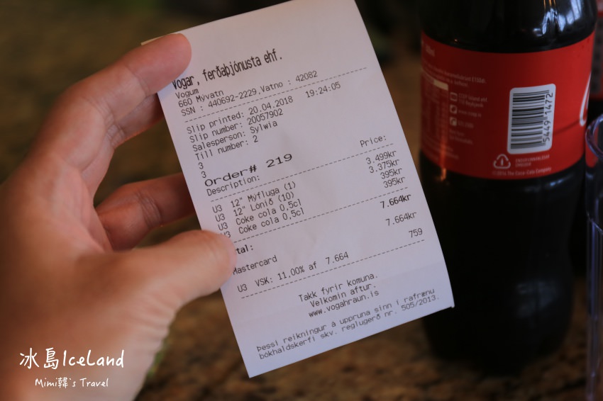 我們最後點了兩個中Pizza,和兩杯可樂⋯結帳 7,664 kr.,約合台幣2,300,還是很恐怖吼?但說真的在冰島外食已經算是不貴的了 🙄