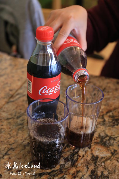 因為司機還要開車不能點啤酒,換用可樂來配Pizza,看到一瓶395冰島克朗的價格,只能默默在心裡告訴自己⋯冰島的可樂是全世界最好喝的、一定是全世界最好喝的 😆