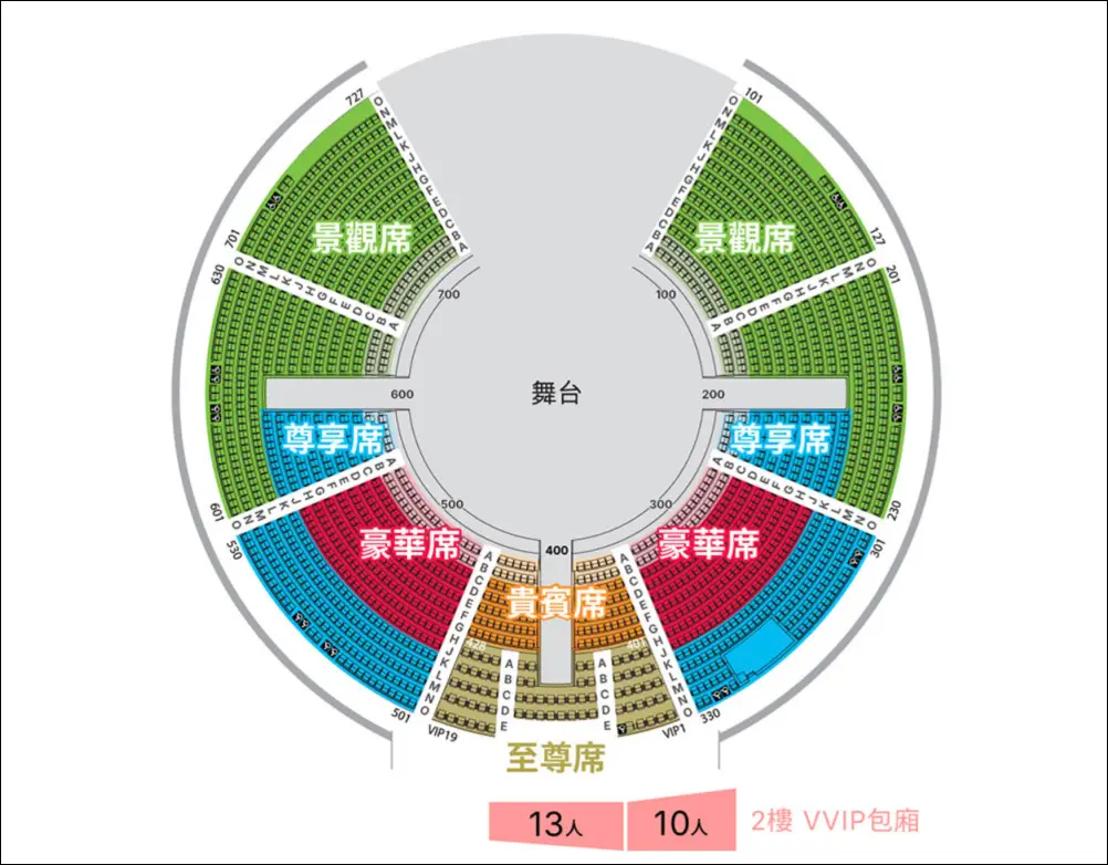 根據最新資訊,現在座位分成以下五種等級。這是一個很現實的取捨問題:你要看整體的宏偉壯觀視覺感,還是想要超近距離看演員的表情?當然價位也是很重要的考量啦!