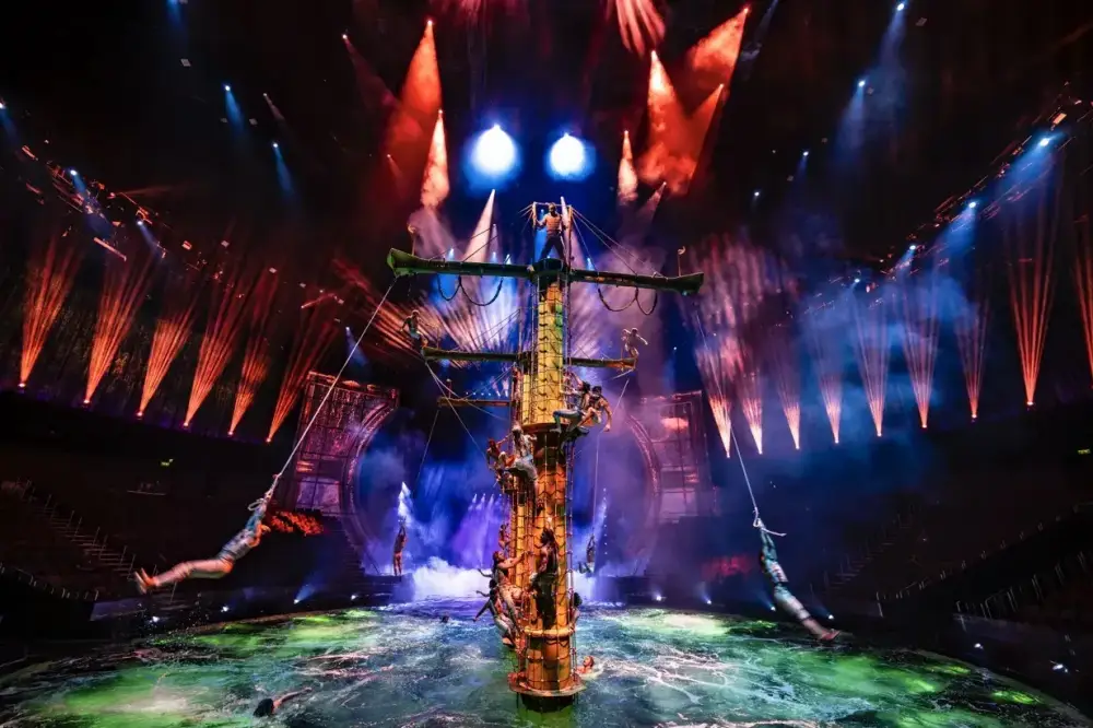 我當時坐在 B 區,雖然視野已經很棒,但心裡還是忍不住會去想,這兩小時燒掉的錢幾乎可以吃兩頓米其林。當舞台瞬間從深水池變成乾燥地面時,那種機關運作的轟鳴聲與現場冷氣開到最強的冷冽感,真的會讓人頭皮發麻。