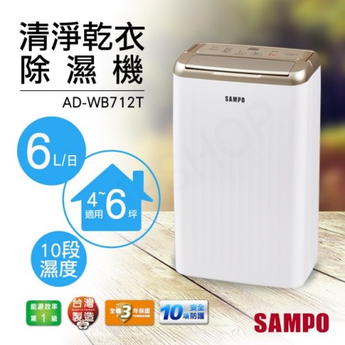 預算有限的話可以考慮國產品牌,聲寶除濕機(AD-WB712T)的評價也蠻不賴,退完稅價格還不到5,000元,6L的除濕效能足夠搞定小家庭的每個房間,而且這款的體積很小,還搭配10段濕度調整以及除濕機/清淨機/乾衣機三機一體的功能唷!