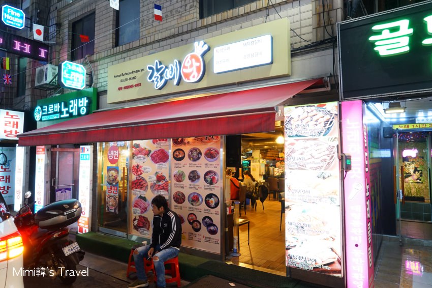 東大排骨王동대갈비왕門口就長這樣,地點就在東大門歷史文化公園站旁,看是要走8號出口,或是走12號出口過來都差不多,這條街上全部都是餐廳,像是陳元祖一隻雞、姜虎東白丁、八色烤肉、ISAAC吐司等,是來逛東大門時很棒的覓食地方。