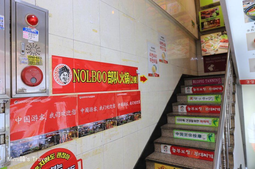 挪夫部隊鍋 – 乙支路6街店是在二樓,看不懂韓文招牌也沒關係,只要認明這個大頭Logo就好啦!
