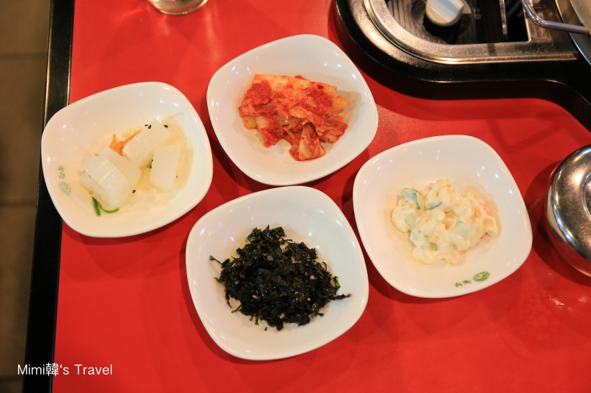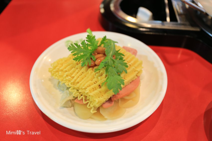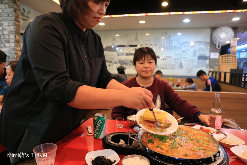 韓國餐廳都一樣,隨桌小菜都是無限續用,挪夫部隊鍋除了泡菜,還有海苔、玉米沙拉蠻特別。