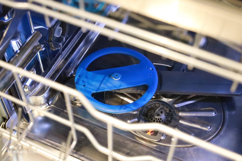 介紹說是伊萊克斯的獨家設計,這個藍色的轉盤會造出雙迴旋水流,徹底洗淨每個角落,各種形狀大小的碗盤鍋具都能輕鬆處理。另外值得一提的是這台洗碗過程超級安靜,我連站在機器旁邊都幾乎聽不到它的聲音。