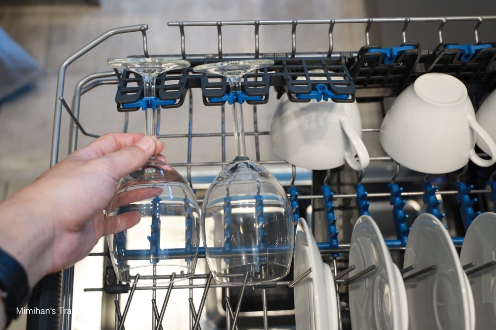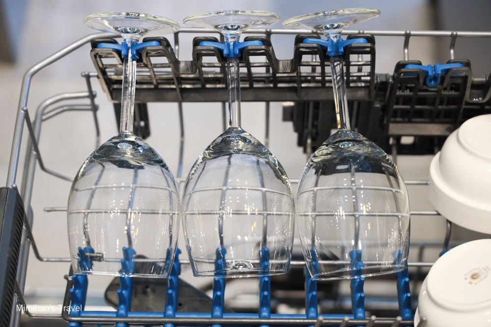 如果家裡常有高腳酒杯需要清洗,這個就很實用,它洗碗藍裡有設計玻璃杯專用的軟柄放置架,不用擔心玻璃杯被碰壞,洗好之後每個都亮晶晶。