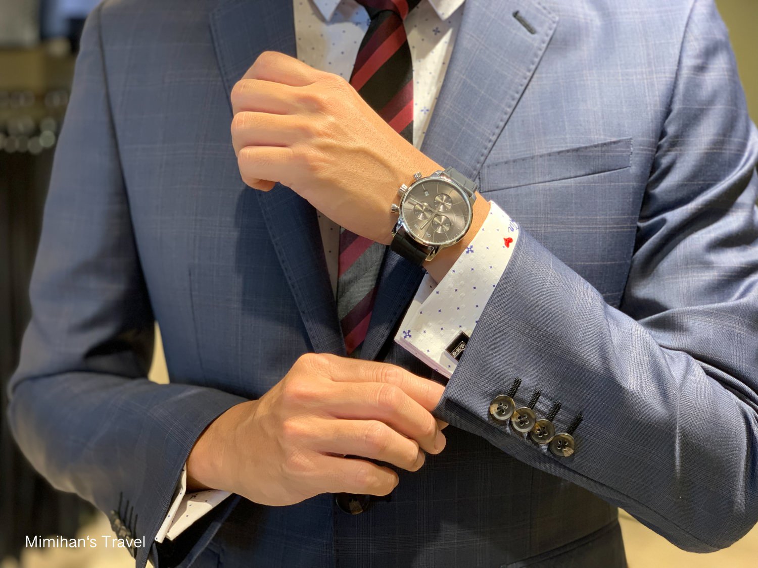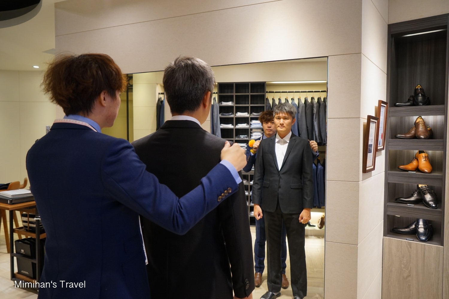 店舖整體明亮清爽,服務人員也都很年輕有禮貌,走進來時沒有大品牌的距離感,也不像一些傳統西服店般暮氣沈沈。而且陸續都一直有客人上門來訂製西裝或取貨,老公說生意好也代表著手藝有相當的水準,事後也沒讓我們失望,不然這次一整套西服訂做下來也要近20,000元捏 😆