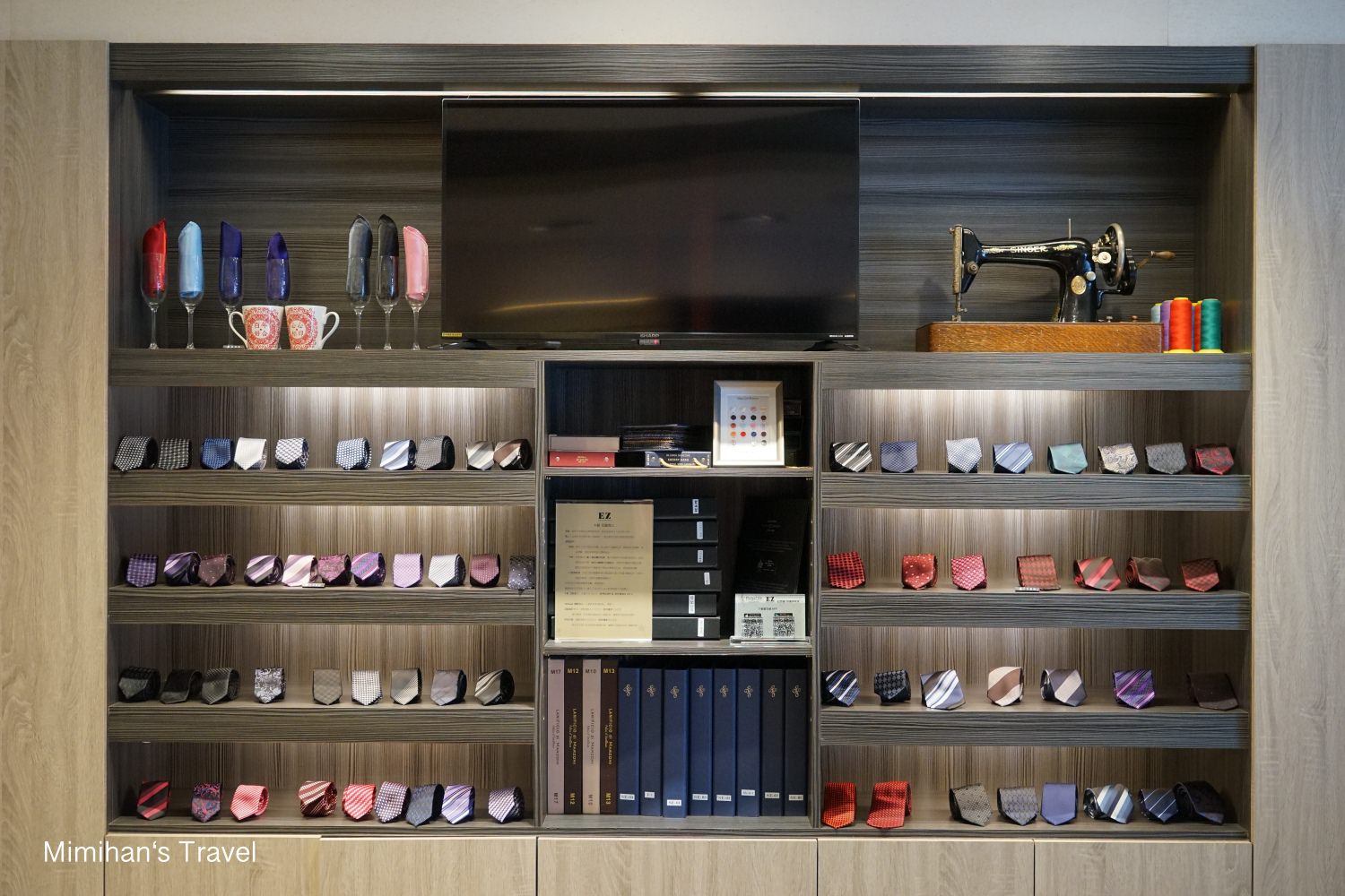 ElegaZzle EZ西服除了量身訂製西裝,現場還有像是領帶、袖釦、皮帶、皮鞋⋯等很多西裝配件可以挑購。而且像我們來的時候剛好有滿額贈品活動,滿$25,000送了精品皮帶、精品袖扣、精品領帶各一。(詳細滿額活動請點,不知道到啥時候結束)
