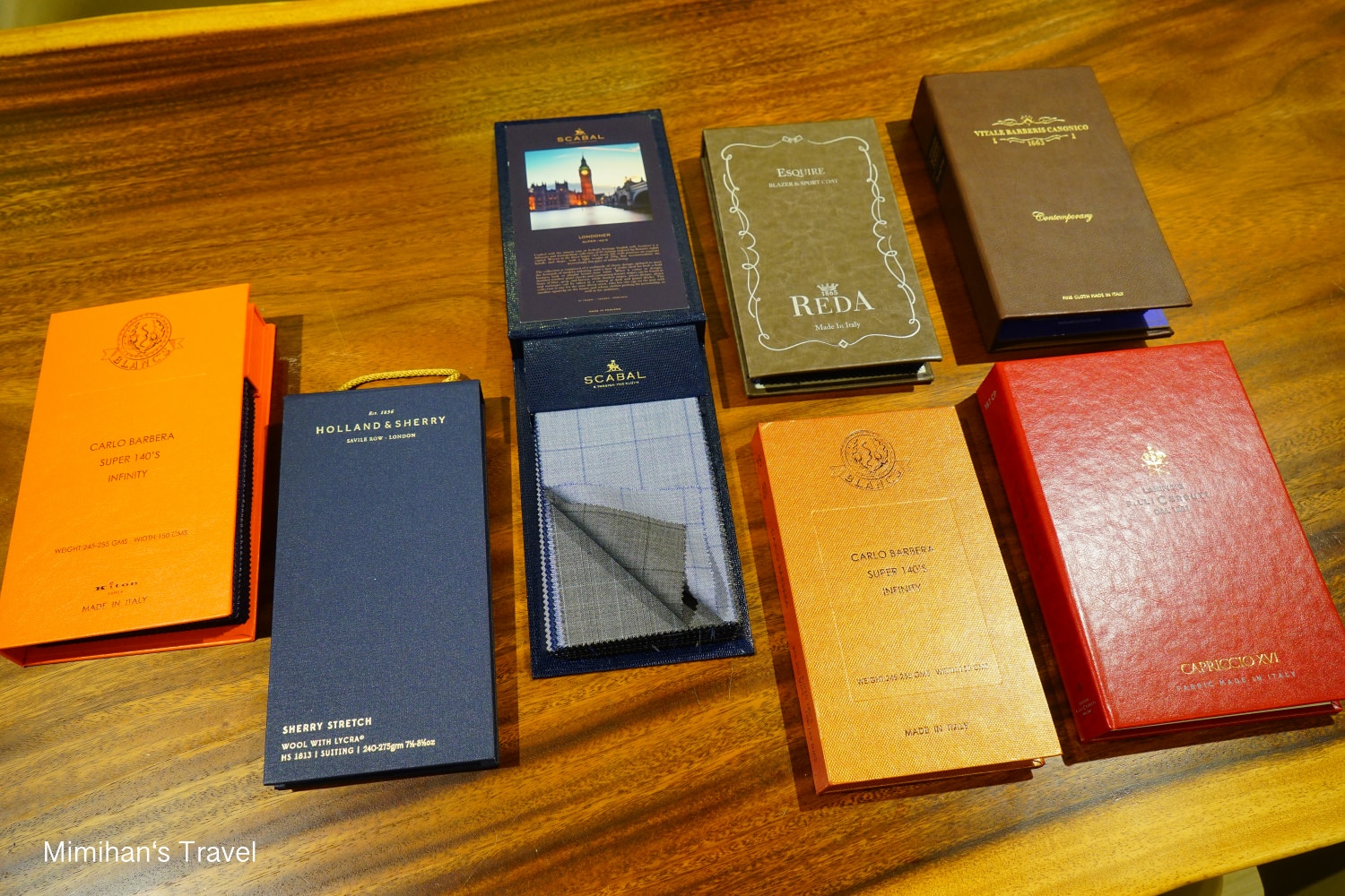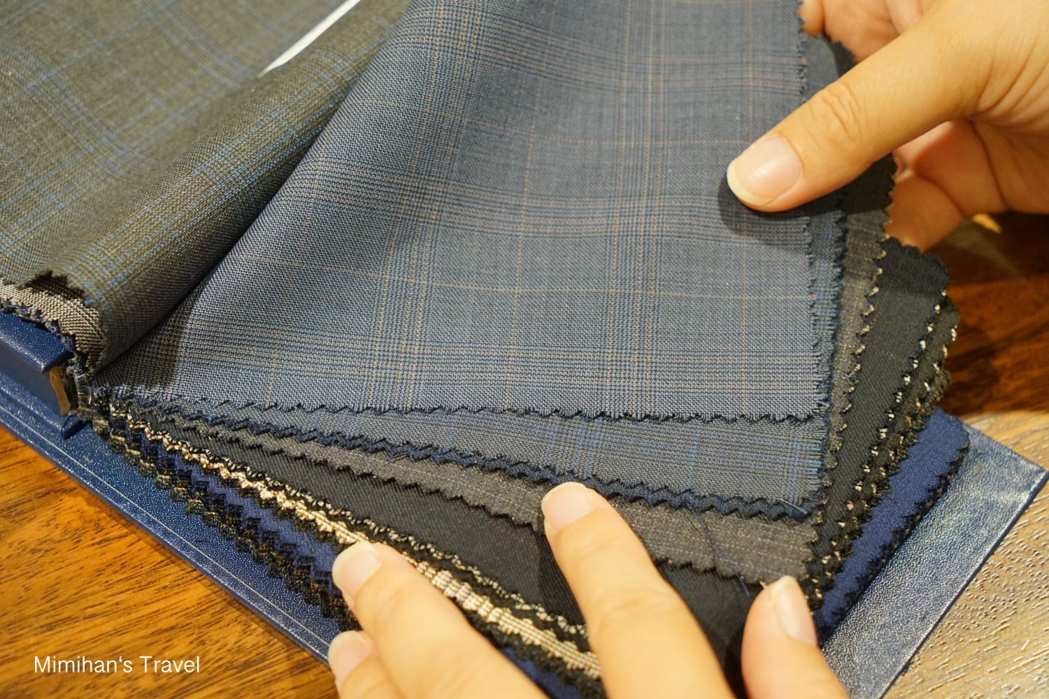挑選布料是訂做西裝的第一件事,也是最花時間的過程,因為布料要考量你的使用需求、喜好,還有最重要的價位。而EZ西服的布料真的是爆炸多,設計師把一大疊布料本通通攤開來,真的是讓人眼花繚亂,每套從最平價約$15,800的ElegaZzle布料、中價位的HOLLAND&SHERRY布料、到最高整套要80,000元的SCABAL布料都有,真的不知道怎麼選,也可以請設計師提供建議,他們會慢慢引導我們做選擇。