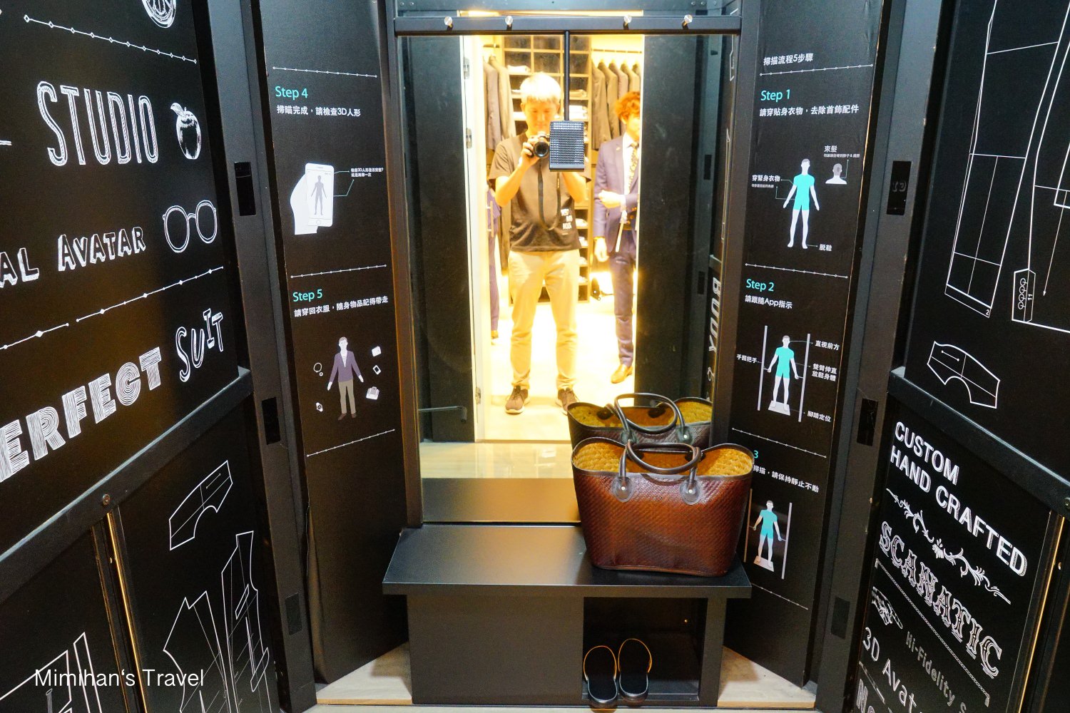 來到量身採吋的部分,以前去傳統西服店訂製都是靠老師傅的經驗與感覺,但隨著科技進步,ElegaZzle EZ西服引進了3in1智慧量身科技:透過3D人體掃描儀、設計師手工丈量、紅外線水平定位,三個過程使剪裁更為精準,我是覺得蠻厲害的哈哈,不知道女生訂製套裝有沒有這種技術。