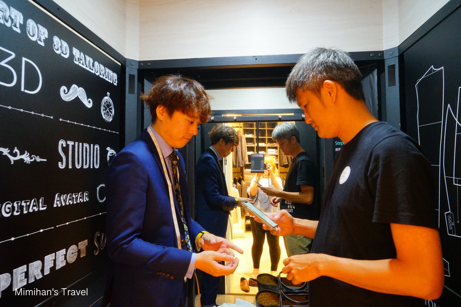 服務人員也會先簡介過程,大概就是:布料選擇-3D掃描-量身採吋-紅外線水平定位-西裝款式挑選-手工剪裁製作-試穿搭配件-完成,全部大概需要3~4週左右,所以如果是重要日子要穿的西裝,例如結婚、當伴郎、重要會議約會⋯之類的,務必提早預留時間來訂做,不然就只能去百貨買現成的囉!