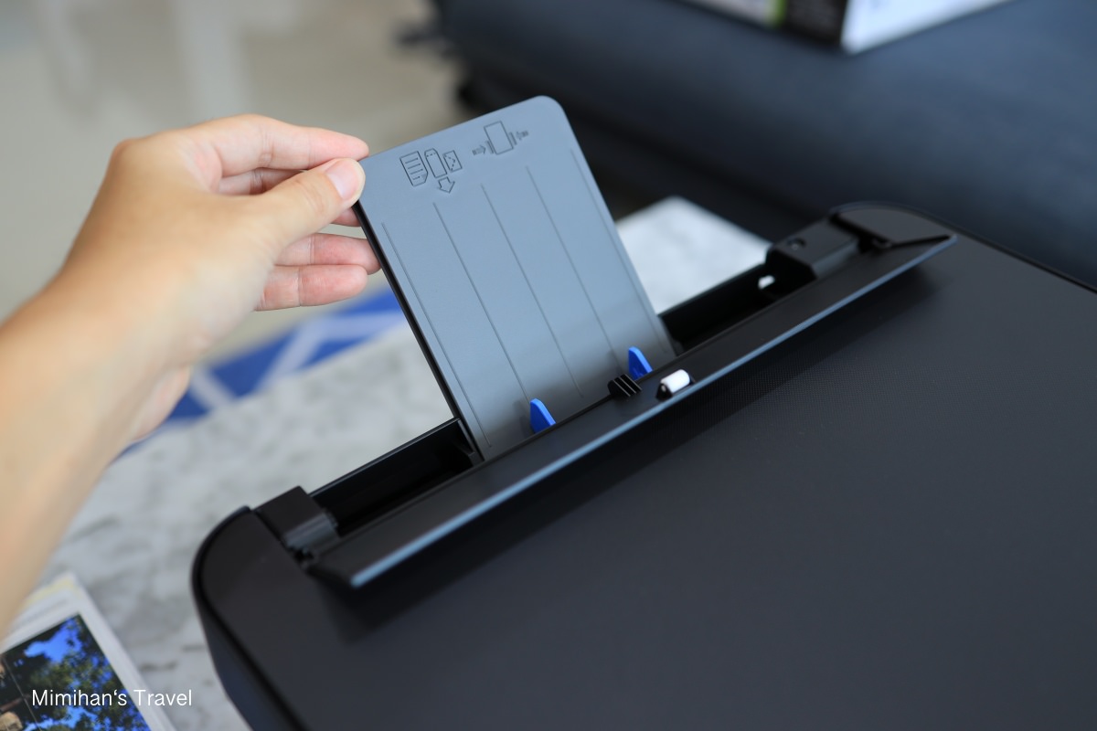 放紙的地方也是設計的蠻精巧,小小一片不用時可以直接收進機身中,然後固定紙張裝置移動時也是蠻順暢,可以對應各種不同大小Size的紙張。