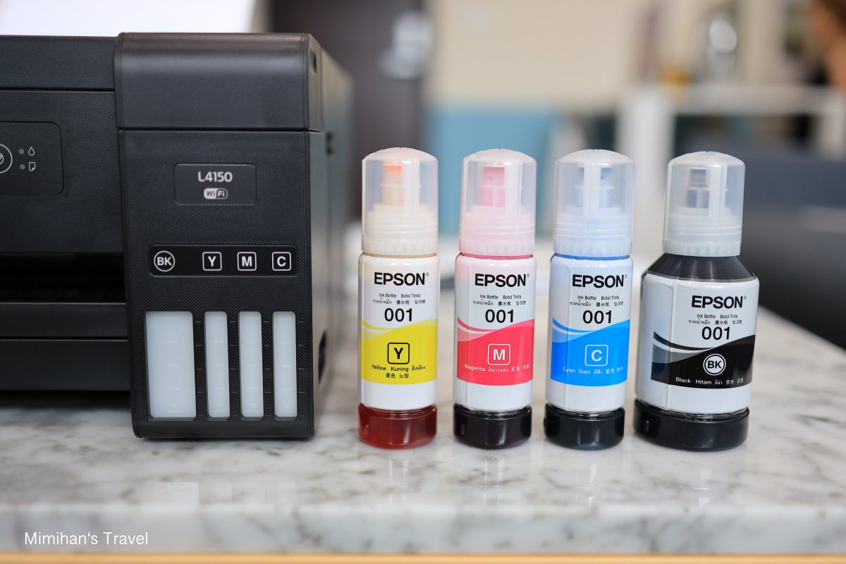 我想有在用印表機的話肯定都會覺得換墨水匣是件麻煩的事情,因為墨水匣很貴又印不了幾張,還得擔心它乾掉,所以後來我都喜歡挑連續供墨印表機,而Epson應該是目前連續供墨印表機的第一品牌了吧!以這台Epson L4150來說,官方數據一瓶黑色墨水可印7,500張;彩色墨水可印6,000張,換算起來列印成本超省,單張黑白約0.07元;彩色約0.22元。