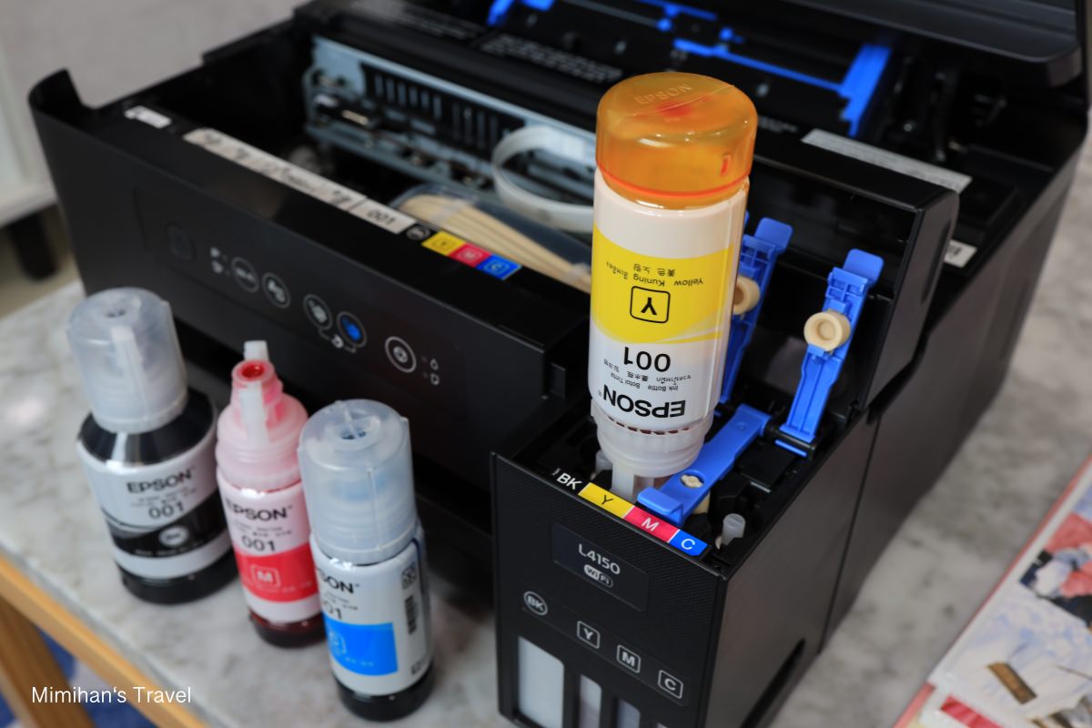 以前自己填充墨水時,都很容易弄得到處都是,還得事先鋪個報紙什麼的。現在Epson L4150在設計上完全改善這個不便,也是我覺得他很值得推薦的一大因素。