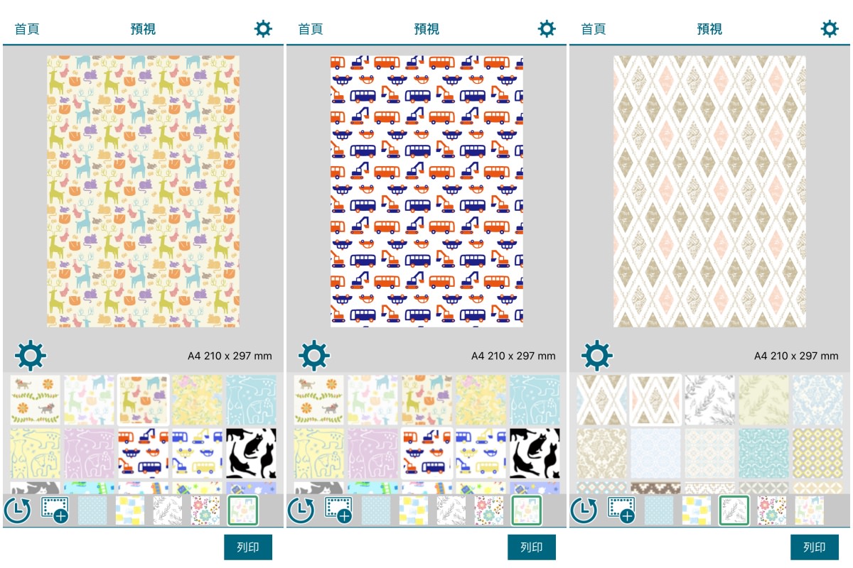 可以直接列印一大堆包裝紙,還內建有超多花樣可以自己選,而且因為可以手機連線列印,不用透過桌機,所以她很快就可以自己上手列印,幾乎各種花紋她都印一輪,直說有印表機超棒。而且我覺得還有另一種好處,那就是即使不小心她包壞掉或撕破了馬上就能再列印來用。