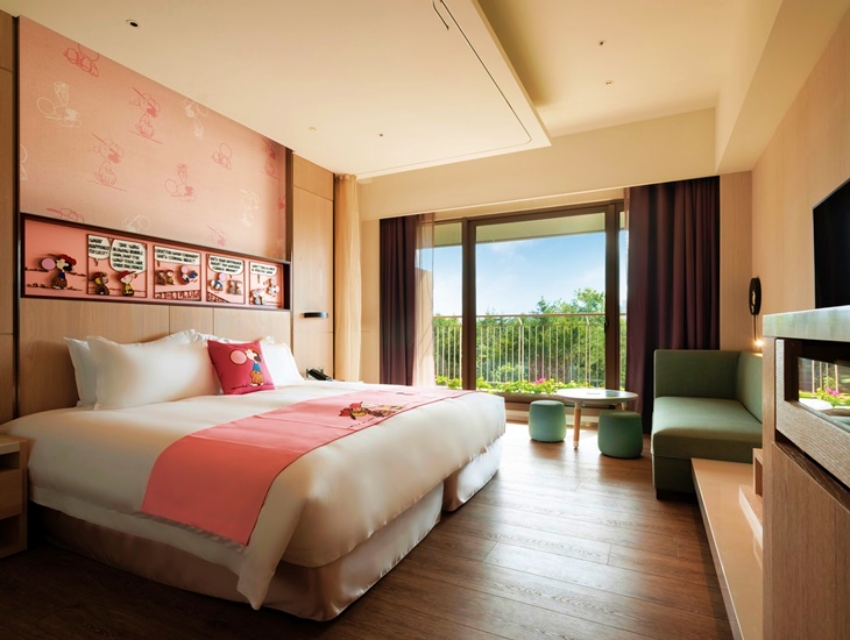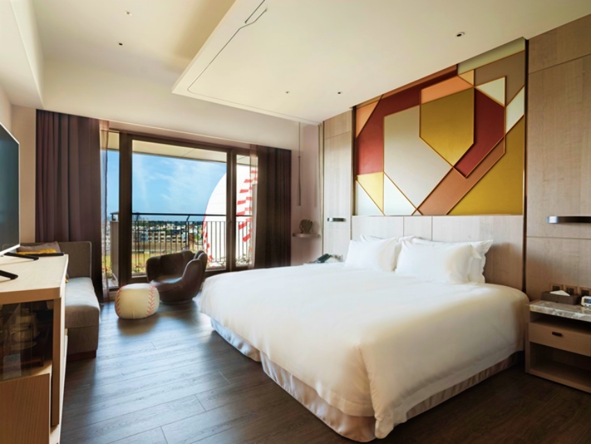 名人堂花園大飯店裡有豪華雙人房、豪華家庭房、史努比主題客房、老兄弟懷舊客房、棒球經典客房、露天SPA池房⋯等多種房型,空間規劃寬敞採光舒服,其中最受歡迎的棒球經典客房就加入許多棒球元素,像是棒球手套造型的椅子和棒球造型矮凳都很吸睛;還有史努比主題客房也是可愛爆表。