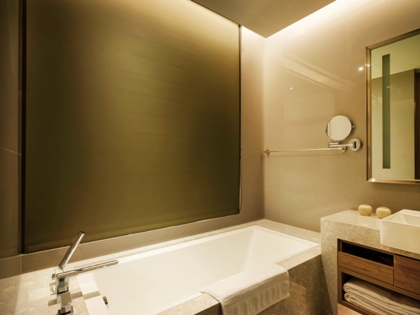 飯店設施應有盡有,乾濕分離的浴室使用TOTO衛浴,有浴缸和免治馬桶。備品也選用很有精緻質感的品牌,如果有小朋友同住,還會貼心準備兒童專用的牙膏牙刷、沐浴用品等盥洗用具。
